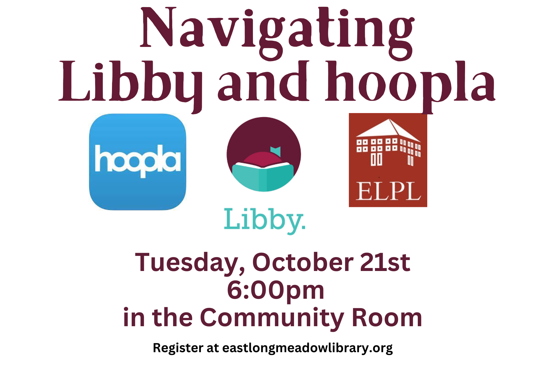 PROGRAM CALENDAR Program Calendar Library CatalogE-Books & AudioMuseum PassesMobile PrintingContact UsHappeningsMuseum Pass Spotlight: USS Constitution Museum!Learn MoreOctober Adult Book Group (10/30)Learn MoreKids Book ClubsLearn MoreTeen Fall CrafternoonsLearn MoreTeen Fandom Club (10/20)Learn MoreNavigating Libby & Hoopla (10/21)Learn MoreMysterious Massachusetts (10/22)Learn MoreEast Longmeadow in the American Revolution (11/5)Learn MoreWowbrary - Check Out Our Newest Titles For free weekly emails of our latest books, movies, and music, enter your email address: