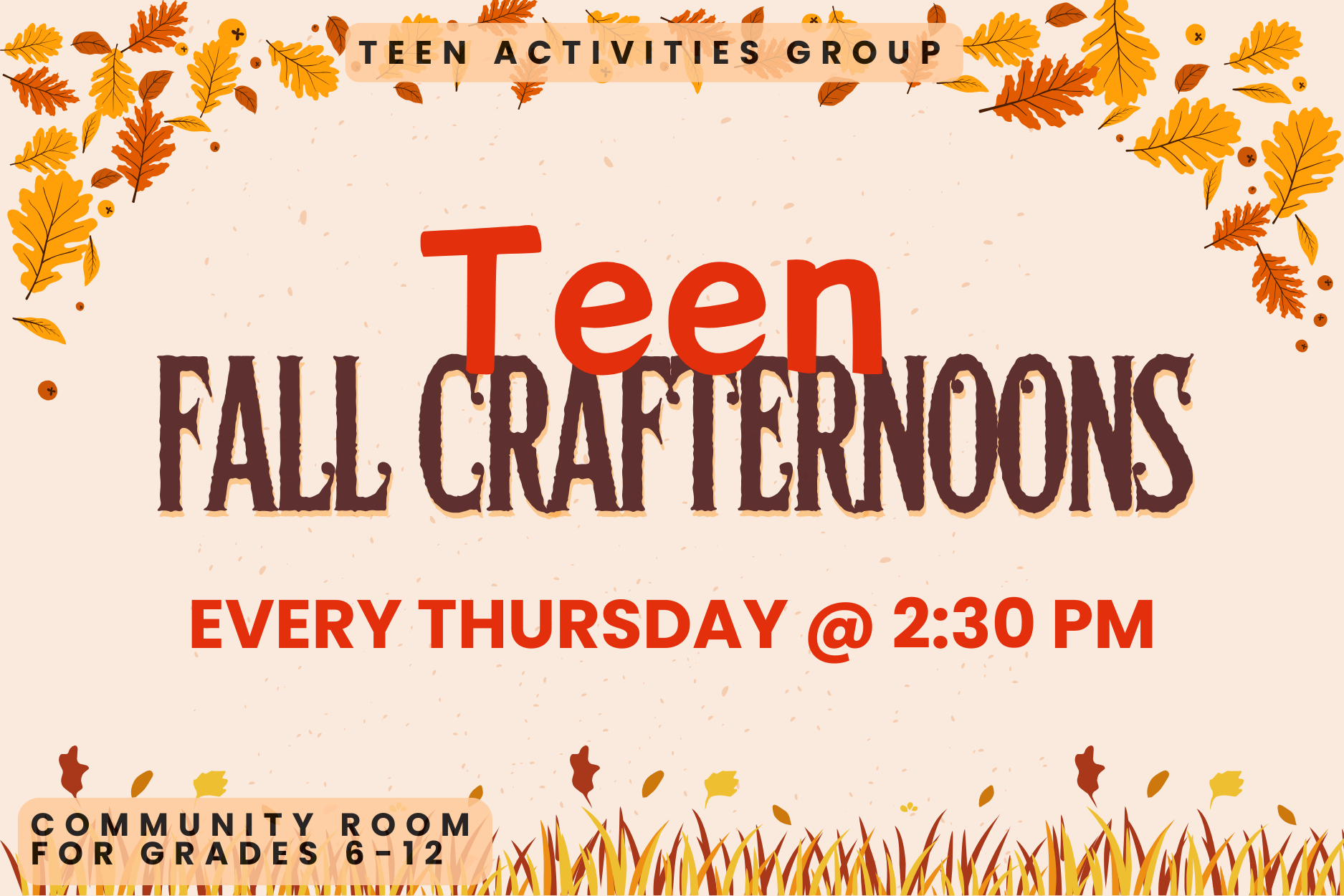 Join us Thursdays @ 2:30 this fall for a Teen Fall Crafternoon series! Each Crafternoon will feature a different project.